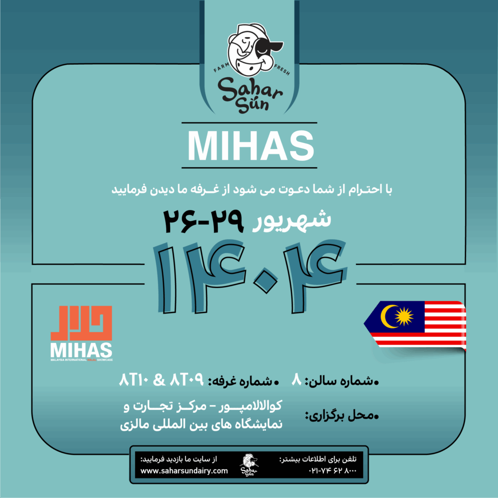با احترام، بدینوسیله از شما دعوت می‌شود از غرفه ما در نمایشگاه MIHAS بازدید فرمایید. زمان برگزاری نمایشگاه: (26 لغایت 29 شهریو...